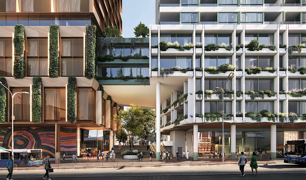 Urban Property Group has recently unveiled the SJB-designed concept proposal for two towers, one 48 storeys and the other 35 storeys in height. The concept, designed by SJB architects, encompasses 33,098 sqm of build-to-rent space, 32,849 sqm of commercial space, 631 sqm of ground-floor retail space, 393 apartments, and 197 car spaces.
